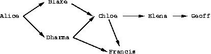 Se Alice è convinta che Blake sia capace di convalidare propriamente le chiavi che firma, allora Alice può dedurre che le chiavi di Chloe e Dharma sono valide senza dover necessariamente eseguire alcun controllo. Semplicemente lei usa la propria copia convalidata della chiave pubblica di Blake per controllare che le firme di Blake apposte alle chiavi di Chloe e Dharma siano buone. In generale, assumendo che Alice sia completamente convinta che chiunque sia capace di convalidare propriamente le chiavi che firmano, allora ogni chiave firmata da una chiave valida può essa stessa essere considerata valida. La radice è la chiave di Alice che si considera valida per definizione.